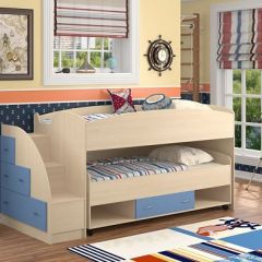 Функциональная зона под спальным местом оборудована широкой рабочей поверхностью из ЛДСП и полками, что позволит сэкономить пространство в помещении.