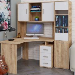 Компьютерный стол КЛ-1.3 с пеналом (фасад ЛДСП) Дуб баррик/белый жемчуг