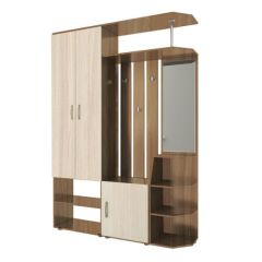 Компактная прихожая Домино от АС-Мебель содержит все элементы, для создания комфортной входной зоны. Ящики и полки для обуви и головных уборов. Шкаф для верхней одежды. Зеркало. Вешалки. Сочетания светлого и тёмного дерева делает её не только стильной, но и практичной. Идеальное решение для прихожих небольшой площади.