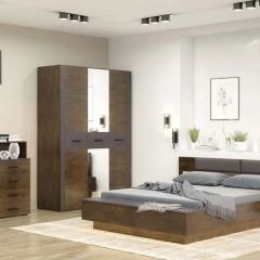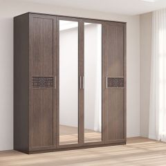 Кэт-4 Шкаф 4-х ств (2 дв зерк) (МДФ Венге/Экокожа Caiman коричневый)